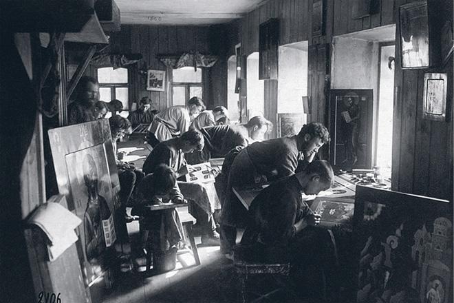 Мстёрская иконописная мастерская. Начало ХХ века. Фото: Аким Курочкин. Мстёрский художественный музей