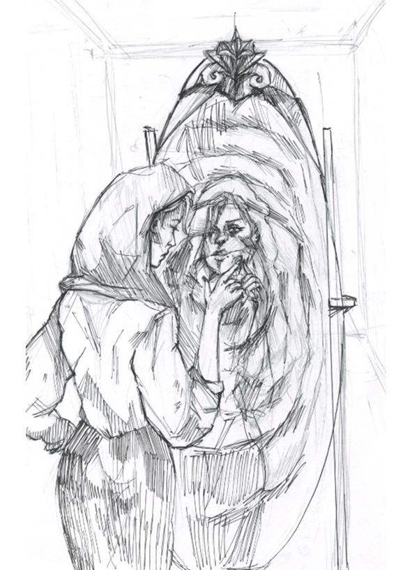 Смерть гордо посмотрела вперед, тут же как будто завибрировал воздух, поднялось пространство и точно опустилось в потолок, откуда ни возьмись ровно посередине зала появилось старое обрамленное золотистой рамой зеркало в человеческий рост. Вся стеклянная поверхность была покрыта приличным слоем пыли, из-под которого выглядывала женщина в черном. Смерть взглянула на свое отражение, оно совершенно точно повторяло ее сейчас.
