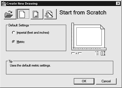 Start from Scratch — создание чертежа, где устанавливаются только единицы измерения в области Default Settings: британские (футы и дюймы) или метрические (миллиметры):