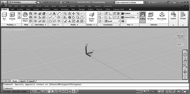 Рис. 2.13. Рабочее пространство для трехмерного моделирования
