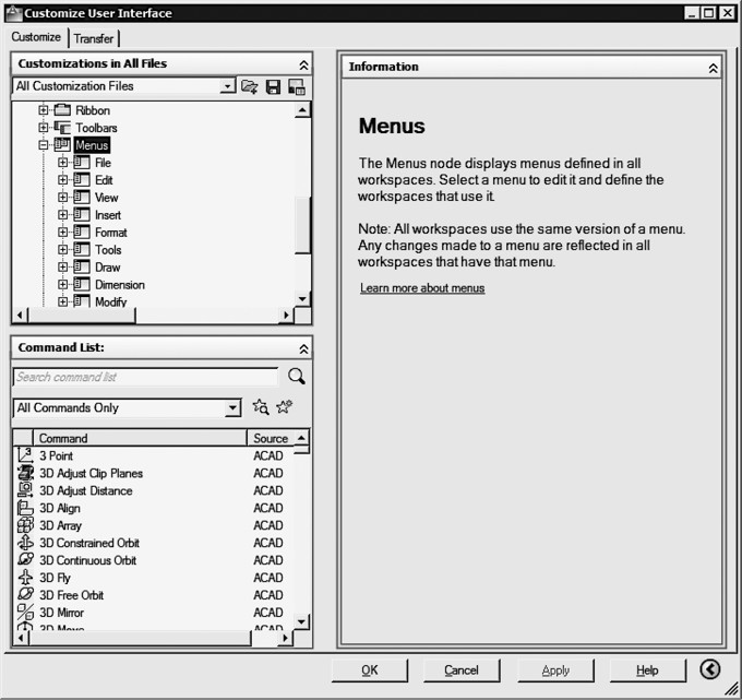 • Customize… — открытие диалогового окна Customize User Interface, позволяющего осуществить настройки интерфейса пользователя.