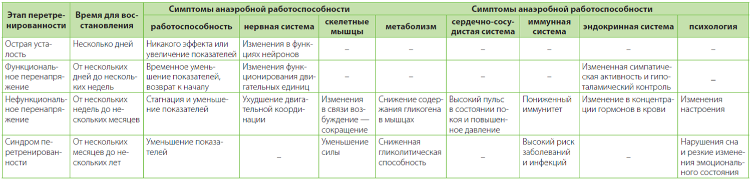 Адаптировано из: A. Fry, Physiological Responses to Short-Term High Intensity Resistance Exercise Overtraining, Ph. D. Diss., The Pennsylvania State University (1993). Адаптировано из: Meeusen et al. (2013).