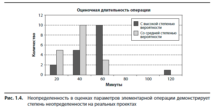 Если фактор неопределенности сам по себе не объясняет, почему срываются проекты, можно ли как-нибудь подогнать существующую теорию под имеющиеся примеры? Мы знаем, что иногда при реализации проектов используются разные средства управления неопределенностью. Например, на проект «Аполлон» были приглашены три разных компании, которые предложили три разных решения по очень сложным разработкам. Выбран был один основной поставщик, а два других остались в качестве запасных — на случай, если решение первого не сработает. Была запланирована масса тестов и повторных проверок (и в ходе их проведения случился ряд весьма зрелищных срывов). Да, это затратный метод управления неопределенностью, но он работает. Руководствуясь теми же рассуждениями, Голдратт предположил, что причиной большинства неудач на проектах является отсутствие эффективного управления неопределенностью. В главе 3 мы рассмотрим эту гипотезу более тщательно. Если он прав, то решением может стать создание такой проектной системы, которая способна справиться с неопределенностью.