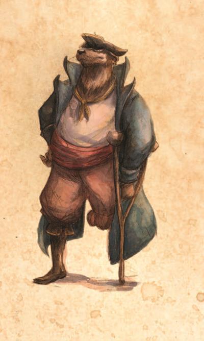 Пират, который когда-то в бою потерял ногу, поэтому сейчас использует деревянный протез. На «Испаньолу» нанимается коком. Нам он представился хитроумной росомахой.