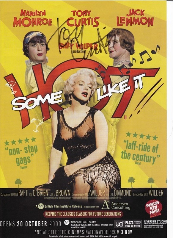 Автограф Тони Кёртиса из «В джазе только девушки»