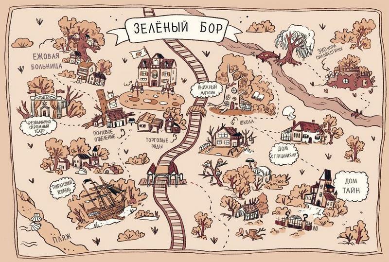 Выйдя из парового омнибуса, Волк Селестен оказался в самой гуще праздничных осенних гуляний. Улицы Зелёного Бора были украшены корзинами с тыквами и вырезанными из них фигурами, а также разноцветными фонариками, свет которых с наступлением ночи напоминал свет звёзд. Торговцы выставляли в витринах своих магазинчиков целые композиции, представлявшие прелестные сценки из лесной жизни, где деревянные фигурки гордо восседали на красных в белую крапинку мухоморах, и перед ними толпились радостные звери. Местная газета уверенно провозгласила: нынешний осенний праздник станет самым красивым из всех, когда-либо отмечавшихся в Зелёном Бору. А семьдесят второй мэр городка, гордый представитель семейства Лесных Мышей, по имени Бонапарт, заявил, что считает это своей важнейшей задачей! Судя по ответам зверей, у которых Селестен спрашивал дорогу, книжный магазин должен был находиться на краю городка, вдалеке от шумных торговых улиц, рядом с тропинкой, ведущей к речке.