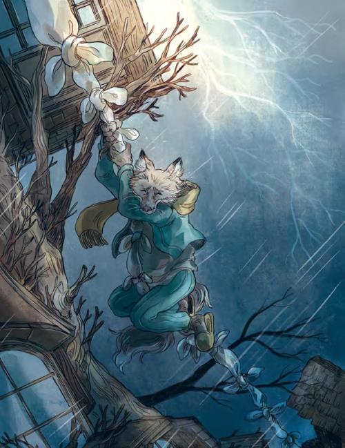 Шум, долетевший до ушей старого лиса, не оставлял никаких сомнений – доктор Ёж свалился с кресла, опрокинув при этом всё, что находилось у него на столе: все медицинские справочники, чашку с остывшим какао, молоточек, которым он стучал по коленкам пациентов, проверяя их рефлексы. А Корнелий тем временем застегнул куртку на все пуговицы и молча устремился вперёд по тёмной дороге: ничто на свете – ни гроза, ни болезнь, ни даже угрызения совести – не могло остановить его.