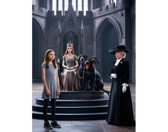 Все три головы собаки разом повернулись в сторону Милены. В глазах горела ненависть, а с клыков капала ядовитая слюна. Псина только и ждала команды, чтобы наброситься на девушку.