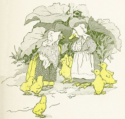 “No, indeed; I lived right there in that farmyard,” answered their mother; and then she began to tell them about it, and of her life there, and of how if she had stayed there they might[11] [12] [13] have had a hen for their mother instead of her. That seemed a horrible thing to the little ducklings—that they might have had some other mother instead of their own. They wanted to know what a hen was, because of course they had never seen one, living where they did. Their mother tried to tell them, but they could not understand very well.