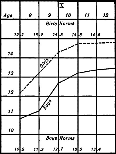 a boy of the same age in nearly every way. This is merely a fact of development. A girl develops faster than a boy, she reaches maturity more quickly, in mind as well as in body. Although a girl is lighter than a boy at birth, on the average she gains in weight faster and is heavier at twelve than a boy of the same age. She also gains faster in height, and for a few years in early adolescence is taller than a boy of the same age. Of course, boys catch up and finally become much taller and heavier than girls. Similarly, a girl’s mind develops faster than the mind of a boy, as shown in memory and other mental functions.
