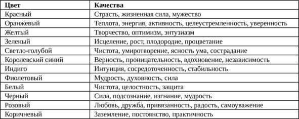 Посмотрите на несколько колод Таро и обратите внимание на то, как художники, которые их создавали, использовали цвета для выражения определенных качеств. Ниже в таблице перечислены качества, которые ассоциируются с различными оттенками.