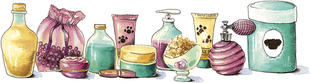 Мафи постояла в восхищении, а потом начала отворачивать пробки и нюхать содержимое склянок. В нос ударяли разные приятные запахи. В самый разгар увлекательного занятия за ее спиной раздалось покашливание. Мафи обернулась, увидела кого-то толстого, черного, громко сопящего, испугалась и уронила банку, которую держала в передних лапах. По белой плитке растеклась розовая лужа.