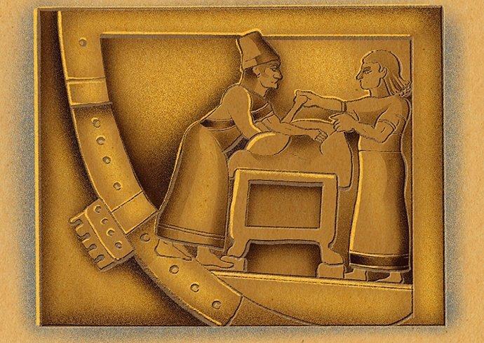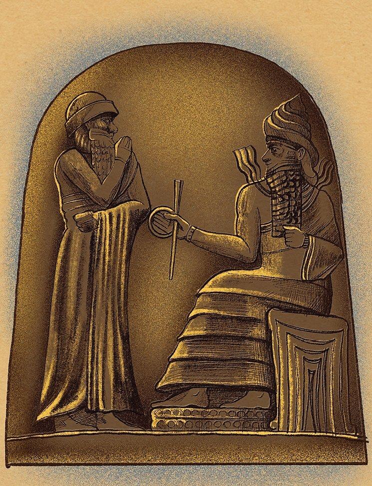 Элемент стелы с законами царя Хаммурапи: Хаммурапи перед богом Шамашем