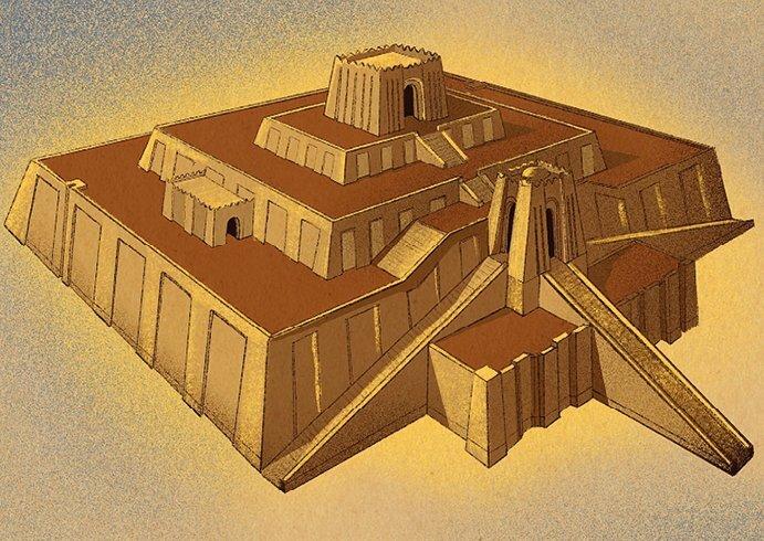 Со временем облик месопотамского храма несколько модифицируется: возведенные из глины сооружения требовали регулярного обновления и реставрации. Проведение строительных работ в итоге приводило к укреплению и расширению первоначальной террасы, поверх которой надстраивались новые платформы. Так, знаменитый зиккурат в Уре (XXI в. до н. э.) в классическом виде имел три яруса, а Вавилонская башня – зиккурат Вавилона Этеменанки – семь (VI в. до н. э.)[12]. Впрочем, в более поздних сооружениях подобная ярусность вызвана не столько строительными обстоятельствами, сколько желанием подчеркнуть величественность сооружения.