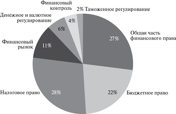 Такое распределение показывает зоны основных научных проблем в области финансового права. Можно предположить, что в будущем также пропорции в проблематике диссертационных исследований по финансовому праву сохранятся.