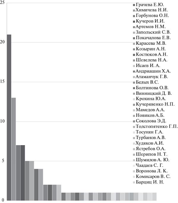 Рис. 5. Число докторских диссертационных исследований по научным консультантам