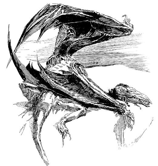 — Ничего подобного! — сурово осадил меня профессор. — Живя в атмосфере высокого просвещения и науки, я и не подозревал, что основные принципы зоологии так мало известны в широких кругах общества. Неужели вы не знакомы с элементарнейшим положением сравнительной анатомии, которое гласит, что крыло птицы представляет собой, в сущности, предплечье, тогда как крыло летучей мыши состоит из трёх удлинённых пальцев с перепонкой между ними? В данном случае кость не имеет ничего общего с костью предплечья, и вы можете убедиться собственными глазами в наличии всего лишь одной перепонки. Следовательно, о летучей мыши нечего и вспоминать. Но если это не птица и не летучая мышь, тогда с чем же мы имеем дело? Что же это может быть?