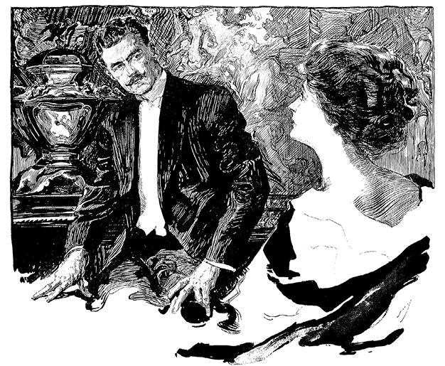 Мистер Хангертон, отец моей Глэдис, отличался невероятной бестактностью и был похож на распушившего перья неопрятного какаду, правда весьма добродушного, но занятого исключительно собственной особой. Если что-нибудь могло оттолкнуть меня от Глэдис, так только крайнее нежелание обзавестись глуповатым тестем. Я убеждён, что мои визиты в «Каштаны» три раза на неделе мистер Хангертон приписывал исключительно ценности своего общества и в особенности своих рассуждений о биметаллизме — вопросе, в котором он мнил себя крупным знатоком.