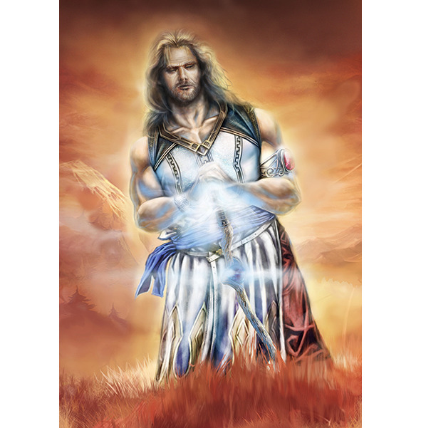Из вспышки материализовался Аркадон, его внушительная и суровая фигура выделялась среди окружающей его темноты. Несколько мгновений он оставался неподвижным: голова наклонена вперед, глаза закрыты, соединенные вместе руки покоятся на вошедшем в землю посохе. Казалось, время остановилось, как вдруг он наконец приоткрыл глаза и, не поднимая головы, глубоким голосом произнес заклинание на неведомом чельди языке: