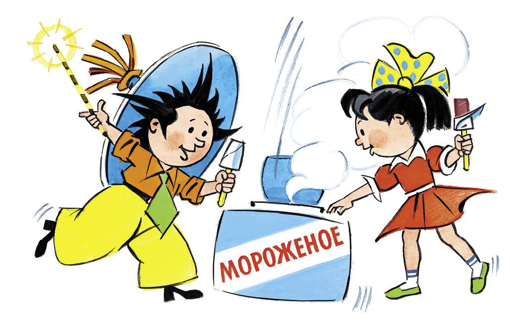 Что-то тихонько щёлкнуло, прошуршало в воздухе, и в руках у Незнайки и Кнопочки снова появилось по порции мороженого.