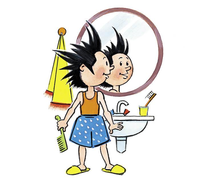 На другой день Незнайка проснулся пораньше и начал совершать хорошие поступки. Первым делом он как следует умылся холодной водой, причём не жалел мыла, и хорошенько почистил зубы.