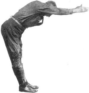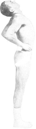 The man who is continually giving orders to subordinates and having other men do things for him, soon finds that he is unable to accomplish things for himself; then, if he is thrown on his own resources, he is helpless. Take a group of men, executives, who for a dozen years have been ordering other men about instead of obeying orders, and you will find that for the most part these captains of industry have lost 50 per cent. of their muscular control. On the other hand, the man who is taking orders retains command over all his muscles, for he is daily and hourly training them to instant obedience. A group of privates will snap into "attention" at the word of command with splendid muscular control; the same number of officers would find great difficulty in doing this. Now as the man loses muscular control he loses poise and carriage. His head rolls about in a slack way on his neck, and has a tendency to drop forward; the muscles of the neck and the upper part of the back grow soft from lack of use and control and he begins to become round-shouldered; his chest falls in as the shoulders come forward and the chest cavity is reduced. This means a gradual cramping of lungs, heart, and stomach.
