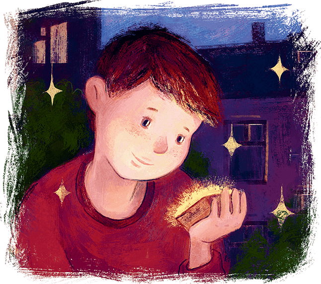 Я открыл коробочку и сперва ничего не увидел, а потом увидел маленький светло-зеленый огонек, как будто где-то далеко-далеко от меня горела крошечная звездочка, и в то же время я сам держал ее сейчас в руках.