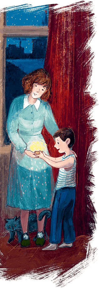 И мама погасила свет, и в комнате стало темно, и мы стали вдвоем смотреть на бледно-зеленую звездочку.