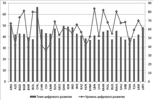 Рис. 1. Индекс состояния и скорости развития цифрового интеллекта перспективных экономик мира