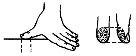 Массаж проводится с помощью трех пальцев: указательного, среднего и безымянного (по 20–25 движений на каждую точку). На рис. 2 показано, как нужно действовать этими пальцами. Можно использовать также один большой палец. На рис. 3 показано, как это делается.