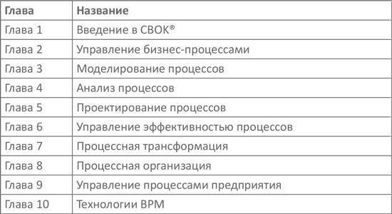 Главы, составляющие свод знаний, относительно независимы друг от друга, и каждая охватывает определенную область BPM. Хотя многое можно почерпнуть, прочтя книгу от начала до конца, от корки до корки, она может дать больше. Структура книги рассчитана на то, что ее будут не просто читать, но и использовать в качестве справочного пособия. Это конспект знаний и опыта в области BPM и трансформации бизнеса, к которому следует обращаться по мере необходимости, сталкиваясь на разных этапах проектов BPM с разными вопросами.