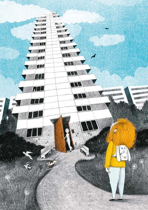 Софийка живёт в таком высоком доме, что, если захочешь увидеть последний этаж, нужно запрокинуть голову далеко назад. Так далеко, что даже шапка с головы слетает, а тем более летняя панамка. Там, в вышине, живут, наверное, самые счастливые люди – за их балконы цепляются облака. Если лечь на скамейку возле подъезда, то можно увидеть небо и голубей, кружащих над крышей. А Софийкина квартира не очень высоко и не очень низко – как раз посерединке. Софийка в лифте всегда сама нажимает кнопку с цифрой «восемь». Правда, для этого ей приходится вставать на носочки и сильно вытягивать руку вверх.