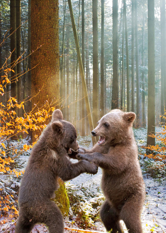 В это время на поляне появились братья. Они весело и шумно кувыркались, пытаясь то хитростью, то ловкостью завоевать первенство…