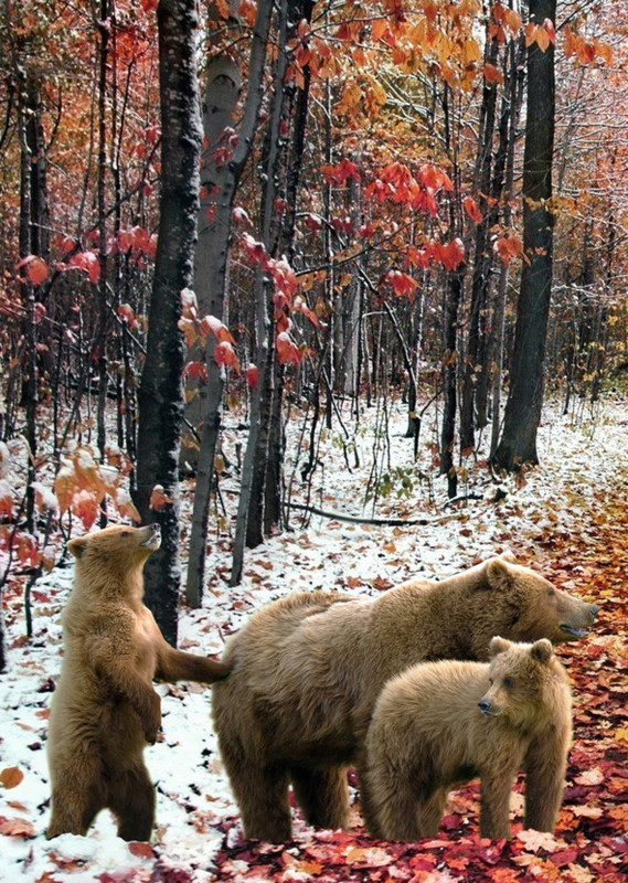 Медвежонок Дао бежал изо всех сил за своими братьями, но никак не мог их догнать. Вконец замученный этими гонками, он плюхнулся на осеннюю траву и с трудом выдохнул…