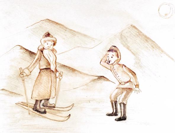 Старец поблагодарил Ивана и они принялись трапезничать. Иван продолжил рассказ про свою родину, про то, что как раз сейчас приближается весёлый Новый год как все, от мала до велика, радуются празднику, как готовятся к нему, как хозяйки пекут пироги, а детишки катаются с высоких горок на санках…