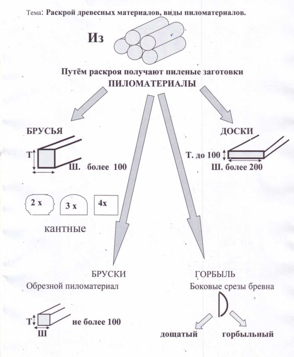 Тема: Раскрой древесных материалов, виды пиломатериалов