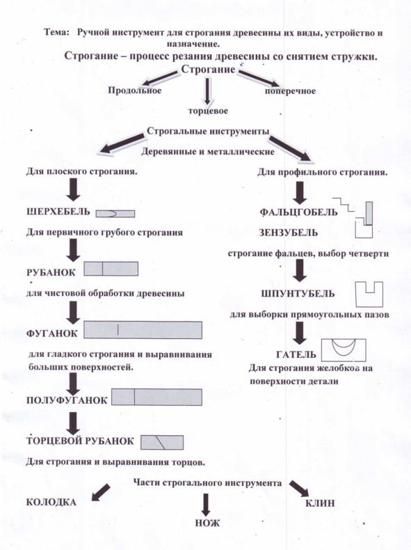Тема: Ручной инструмент для строгания древесины их виды, устройство и назначение