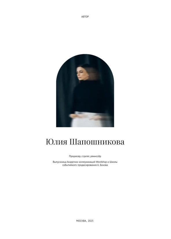 В 2010 году я окончила Белгородский государственный институт искусств и культуры, кафедру режиссуры. С этого момента начался мой путь: от интуиции — к системе, от вдохновения — к структуре, от первого шага — к зрелому проектному мышлению.