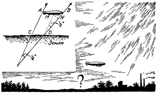 — Тень, конечно, длиннее дирижабля: ведь лучи солнца расходятся веером, — последовало сразу решение.