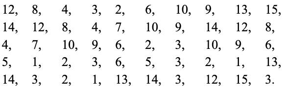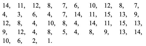 Первый ряд шашек в порядке, как и второй, за исключением последней шашки (9). Эта шашка занимает место, которое в нормальном расположении принадлежит 8. Шашка 9 стоит, значит, ранее шашки 8: такое упреждение нормального порядка называют «беспорядком». О шашке 9 мы скажем: здесь имеет место 1 беспорядок. Рассматривая дальнейшие шашки, обнаруживаем «упреждение» для шашки 14; она поставлена на три места (шашек 12, 13, 11) ранее своего нормального положения; здесь у нас 3 беспорядка (14 ранее 12; 14 ранее 13; 14 ранее 11). Всего мы насчитали уже 1 + 3 = 4 беспорядка. Далее, шашка 12 помещена ранее шашки 11, и точно так же шашка 13 ранее шашки 11. Это дает еще 2 беспорядка. Итого имеем 6 беспорядков. Подобным образом для каждого расположения устанавливают общее число беспорядков, освободив предварительно последнее место в правом нижнем углу. Если общее число беспорядков, как в рассмотренном случае, четное, то заданное расположение может быть приведено к нормальному конечному; другими словами, оно принадлежит к разрешимым. Если же число беспорядков нечетное, то расположение принадлежит ко второй серии, т. е. к неразрешимым (нуль беспорядков принимается за четное число их).