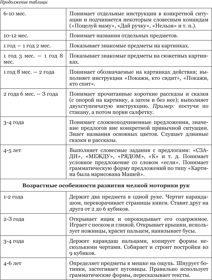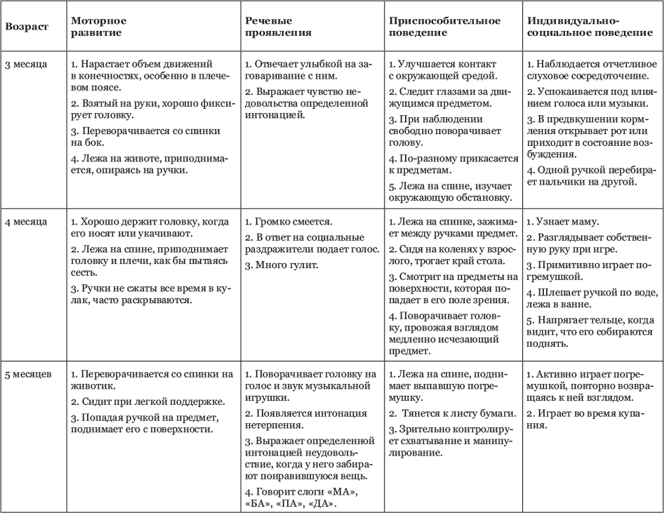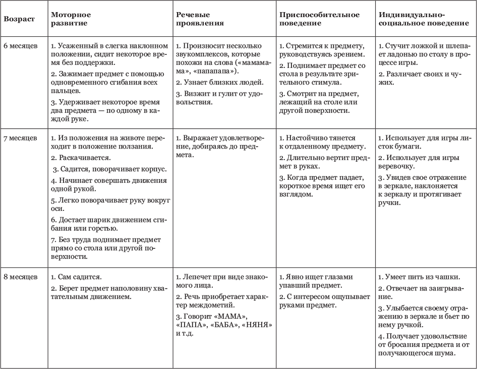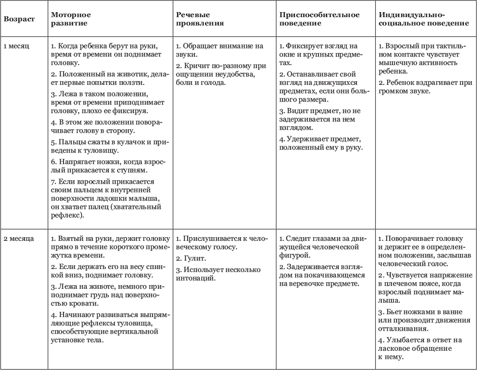 Ниже я приведу основные показатели развития ребенка в разный возрастной период.