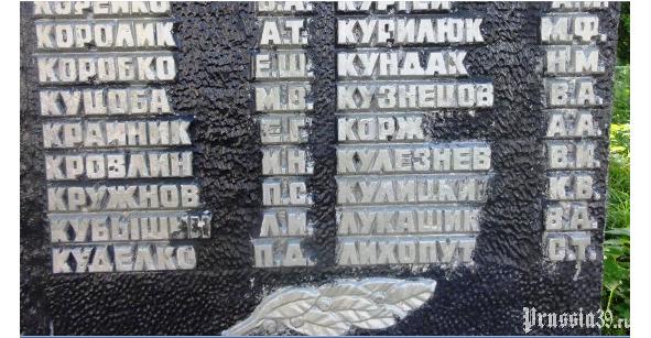 Калининградская область, Зеленоградский район, муниципальное образование «Красноторовское сельское поселение», п. Русское, ул. Победы, 14, братская могила 39—73.