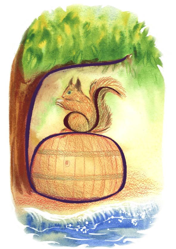 — А зачем тебе, добрая соседка Белка, бочка? Запасы ты в дупле хранишь, воды для питья тебе и так хватает. Не вздумала ли ты себе баню устроить?