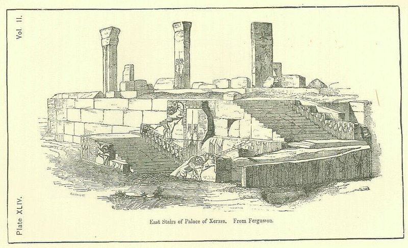 As a builder, Xerxes showed something of the same grandeur of conception which is observable in his great military enterprise and in the works by which it was accompanied. His Propylaea, and the sculptured staircase in front of the Chebl Minar, which is undoubtedly his work, are among the most magnificent erections upon the Persepolitan platform; and are quite sufficient to place him in the foremost rank of Oriental builders. If we were to ascribe the Chehl Minar itself to him, we should have to give him the palm above all other kings of Persia; but on the whole it is most probable that that edifice and its duplicate at Susa were conceived, and in the main, constructed, by Darius.