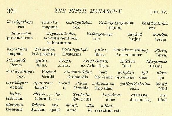 From this review of the governmental system of Darius we must now return to the actions of his later life. The history of an Oriental monarchy must always be composed mainly of a series of biographies; for, as the monarch is all in all in such communities, his sayings, doings, and character, not only determine, but constitute, the annals of the State. In the second period of his reign, that which followed on the time of trouble and disturbance, Darius (as has been already observed) appears to have pursued mainly the arts of peace. Bent on settling and consolidating his Empire, he set up everywhere the satrapial form of government, organized and established his posts, issued his coinage, watched over the administration of justice, and in various ways exhibited a love of order and method, and a genius for systematic arrangement. At the same time he devoted considerable attention to ornamental and architectural works, to sculpture, and to literary composition. He founded the royal palace at Susa, which was the main residence of the later kings. At Persepolis he certainly erected one very important building; and it is on the whole most probable that he designed—if he did not live to execute—the Chehl Minor itself—the chief of the magnificent structures upon the great central platform. The massive platform itself, with its grand and stately steps, is certainly of his erection, for it is inscribed with his name. He gave his works all the solidity and strength that is derivable from the use of huge blocks of a good hard material. He set the example of ornamenting the stepped approached to a palace with elaborate bas-reliefs. He designed and caused to be constructed in his own lifetime the rock-tomb at Nakhsh-i-Rustam, in which his remains were afterwards laid. The rock-sculpture at Behistun was also his work. In attention to the creation of permanent historical records he excelled all the Persian kings, both before him and after him. The great Inscription of Behistun has no parallel in ancient times for length, finish, and delicacy of execution, unless it be in Assyria or in Egypt. The only really historical inscription at Persepolis is one set up by Darius. He was the only Persian king, except perhaps one, who placed an inscription upon his tomb. The later monarchs in their records do little more than repeat certain religious phrases and certain forms of self-glorification which occur in the least remarkable inscriptions of their great predecessor. He alone oversteps those limits, and presents us with geographical notices and narratives of events profoundly interesting to the historian.