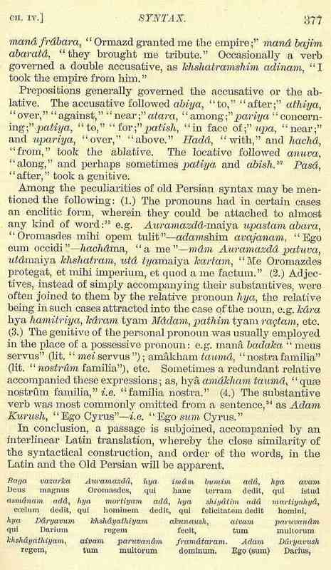 Persia Proper seems to have corresponded nearly to that province of the modern Iran, which still bears the ancient name slightly modified, being called Farsistan or Fars. The chief important difference between the two is, that whereas in modern times the tract called Herman is regarded as a distinct and separate region, Carmania anciently was included within the limits of Persia. Persia Proper lay upon the gulf to which it has given name, extending from the mouth of the Tab (Oroatis) to the point where the gulf joins the Indian Ocean. It was bounded on the west by Susiana, on the north by Media Magna, on the east by Mycia, and on the south by the sea. Its length seems to have been about 450, and its average width about 250 miles. It thus contained an area of rather more than 100,000 square miles.