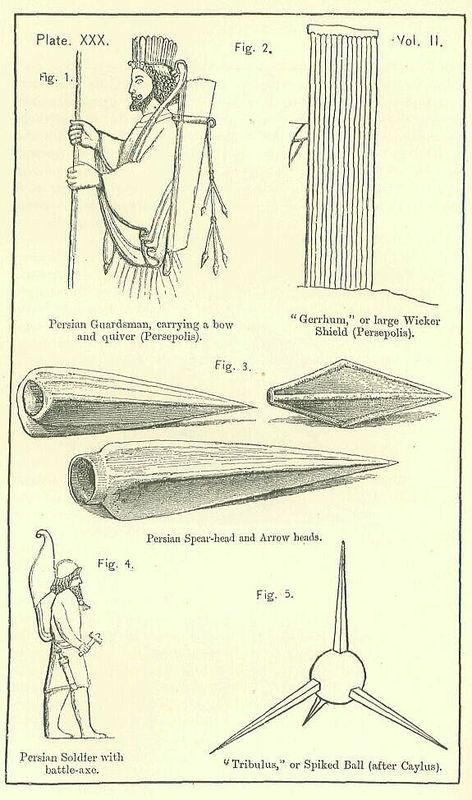 The march now proceeded rapidly. The gates of Syria—a narrow pass on the east coast of the Gulf of Issus, shut in, like Thermopylae, between the mountains and the sea, and strengthened moreover by fortifications—were left unguarded by Abrocomas; and the army, having traversed them without loss, crossed the Amanus range by the pass of Beilan, and in twenty-nine days from Tarsus reached Thapsacus on the Euphrates. The forces of Artaxerxes had nowhere made their appearance—Abrocomas, though he had 300,000 men at his disposal, had weakly or treacherously abandoned all these strong and easily defensible positions; he does not seem even to have wasted the country; but, having burnt the boats at Thapsacus, he was content to fall back upon Phoenicia, and left the way to Babylon and Susa open. At Thapsacus there was little difficulty in persuading the Greeks, who had no longer the sea before their eyes, to continue the march; they only stipulated for a further increase of pay, which was readily promised them by the sanguine prince, who believed himself on the point of obtaining by their aid the inexhaustible treasures of the Empire. The river, which happened to be unusually low for the time of year, was easily forded. Cyrus entered Mesopotamia, and continued his march down the left bank of the Euphrates at the quickest rate that it was possible to move a hundred thousand Orientals. In thirty-three days he had accomplished above 600 miles, and had approached within 120 miles of Babylon without seeing any traces of an enemy. His only difficulties were from the nature of the country, which, after the Khabour is passed, becomes barren, excepting close along the river. From want of fodder there was a great mortality among the baggage-animals; the price of grain rose; and the Greeks had to subsist almost entirely upon meat. At last, when the Babylonian alluvium was reached, with its abundance of fodder and corn, signs of the enemy began to be observed. Artaxerxes, who after some doubts and misgivings had finally determined to give his enemy battle in the plain, was already on his way from Babylon, with an army reckoned at 900,000 men and had sent forward a body of horse, partly to reconnoitre, partly to destroy the crops, in order to prevent Cyrus and his troops from benefiting by them. Cyrus now advanced slowly and cautiously, at the rate of about fourteen miles a day, expecting each morning to fight a general engagement before evening came. On the third night, believing the battle to be imminent, he distributed the commands and laid down a plan of operations. But morning brought no appearance of the enemy, and the whole day passed tranquilly. In the course of it, he came upon a wide and deep trench cut through the plain for a distance of above forty miles—a recent work, which Artaxerxes had intended as a barrier to stop the progress of his enemy. But the trench was undefended and incomplete, a space of twenty feet being left between its termination and the Euphrates. Cyrus, having passed it, began to be convinced that his brother would not risk a battle in the plain, but would retreat to the mountains and make his stand at Persepolis or Ecbatana. He therefore continued his march negligently. His men piled their arms on the wagons or laid them, across the beasts of burthen; while he himself exchanged the horse which he usually rode for a chariot, and proceeded on his way leisurely, having about his person a small escort, which preserved their ranks, while all the rest of the troops were allowed to advance in complete disarray.