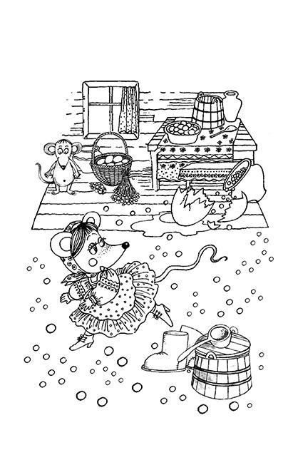 А мышка бежала, хвостиком махнула, яичко упало и разбилось.