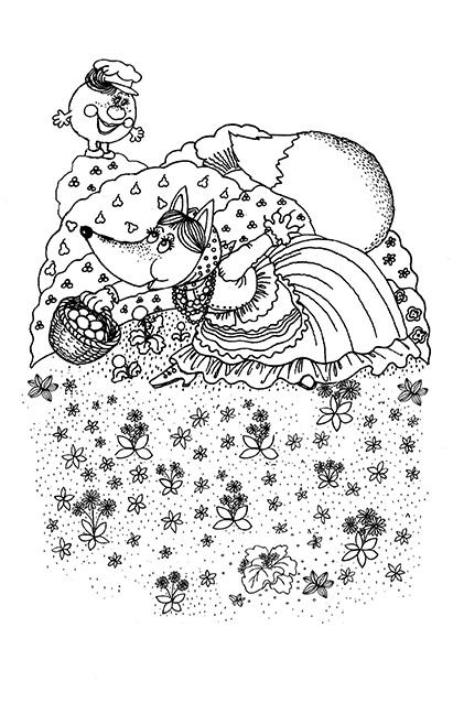 — Спасибо, колобок! Славная песенка, еще бы послушала! Сядь-ка на мой язычок да пропой в последний разок, — сказала лиса и высунула свой язык; колобок сдуру прыг ей на язык, а лиса — ам его! и скушала.