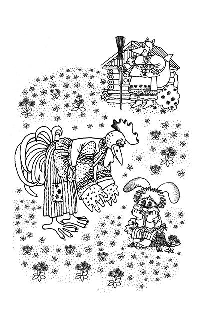 Идет опять зайчик да плачет, а ему навстречу петух с косой: